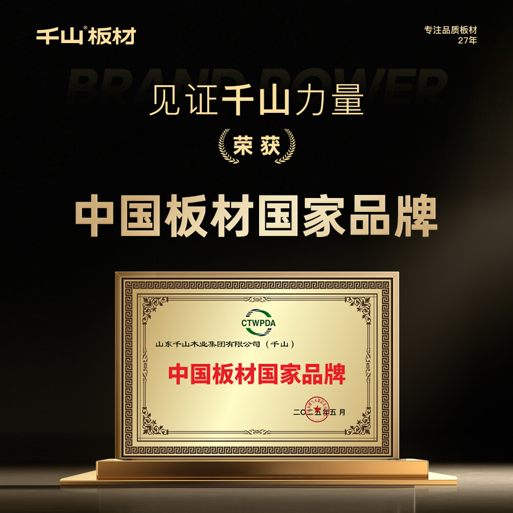 山東千山木業集團有限公司始創于1998年,是集板材研發生產、銷售、印刷、浸膠、全屋定制等為一體的綜合性品牌運營企業。公司總部位于中國“板材之都"山東臨沂,擁有多個產業基地,堅持"質量第一,客戶至上"的原則,致力于為客戶提供高質量的板材產品。千山產品均通過ISO9001質量管理體系認證, 歐盟CE認證,中國環境標志認證等。千山板材先后榮獲山東名牌、省林業重點"龍頭企業”、市級重點龍頭企業、板材十大品牌等榮譽。千山集團未來發展將立足山東,布局全國,努力推動板材產業的高端化、品牌化發展,實現企業的可持續發展。